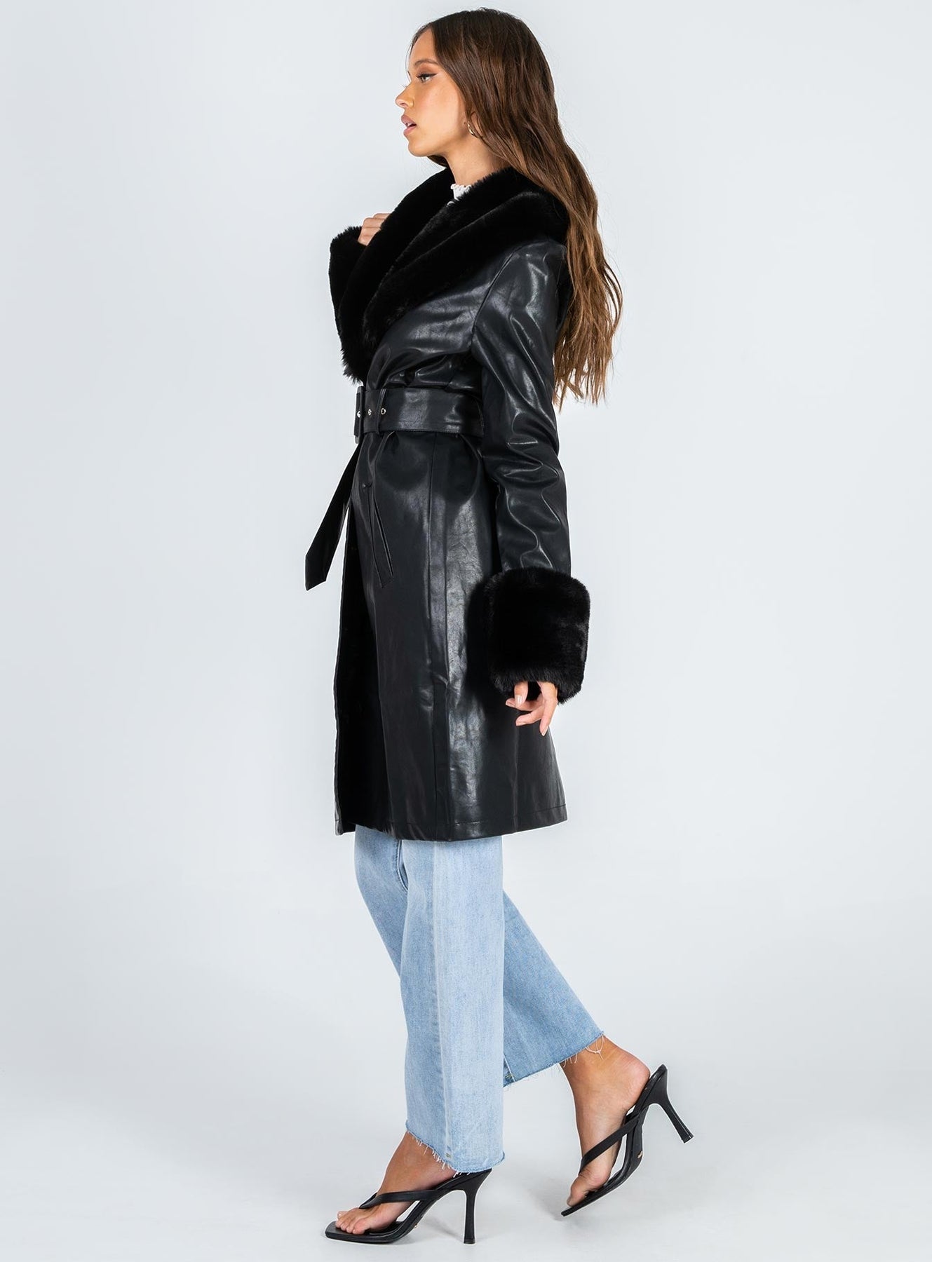 The Harley Classic Long Belted Trench Coat brings together refined tailoring and modern design. Featuring a sleek silhouette with a removable waist belt and plush faux fur trim on the collar and cuffs, it delivers both structure and warmth. Fully lined for comfort, this coat transitions effortlessly from daywear to evening chic.