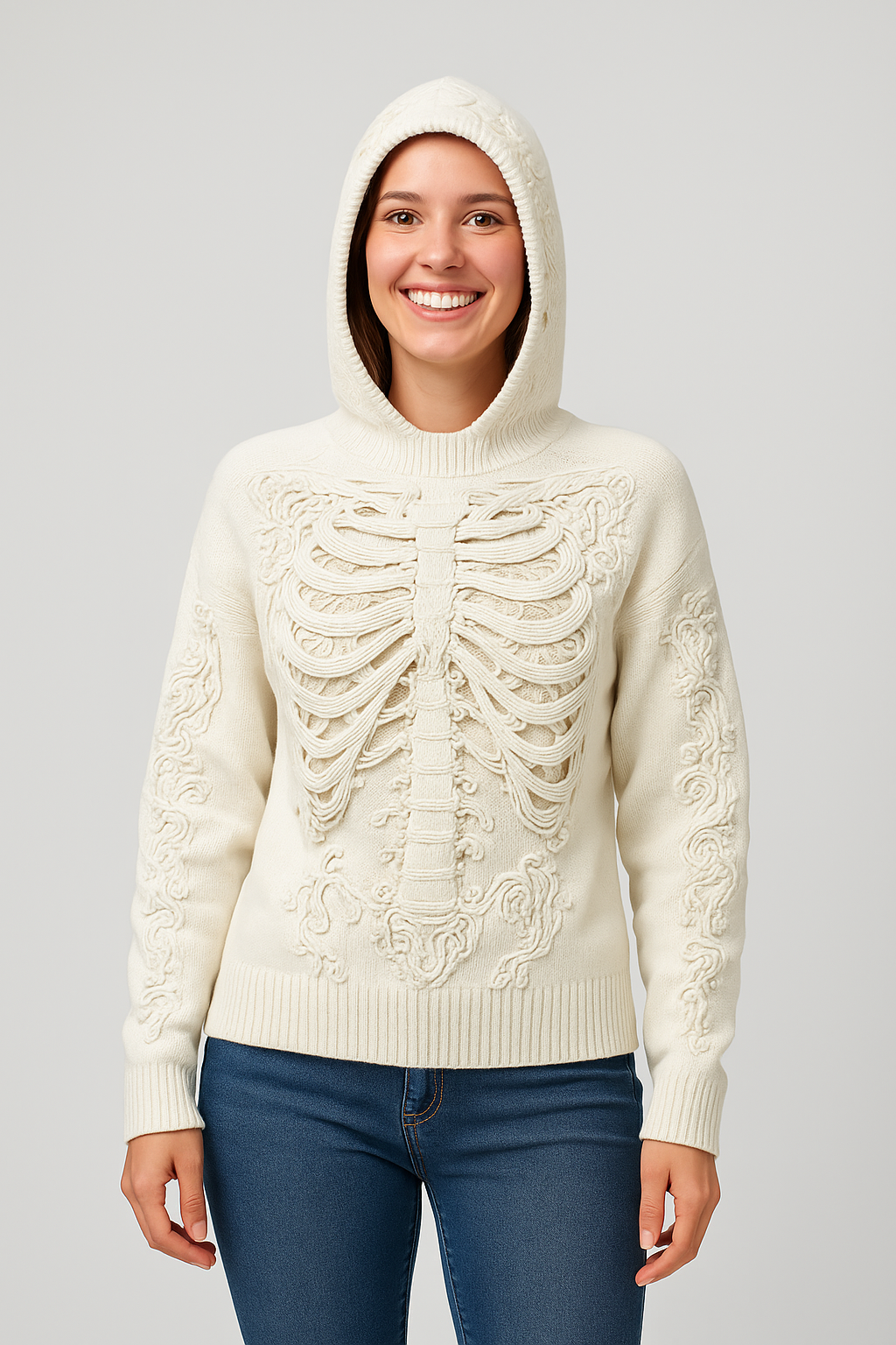 Eluned | 3D Halloween-Inspired Skeleton Knit Hoodie
