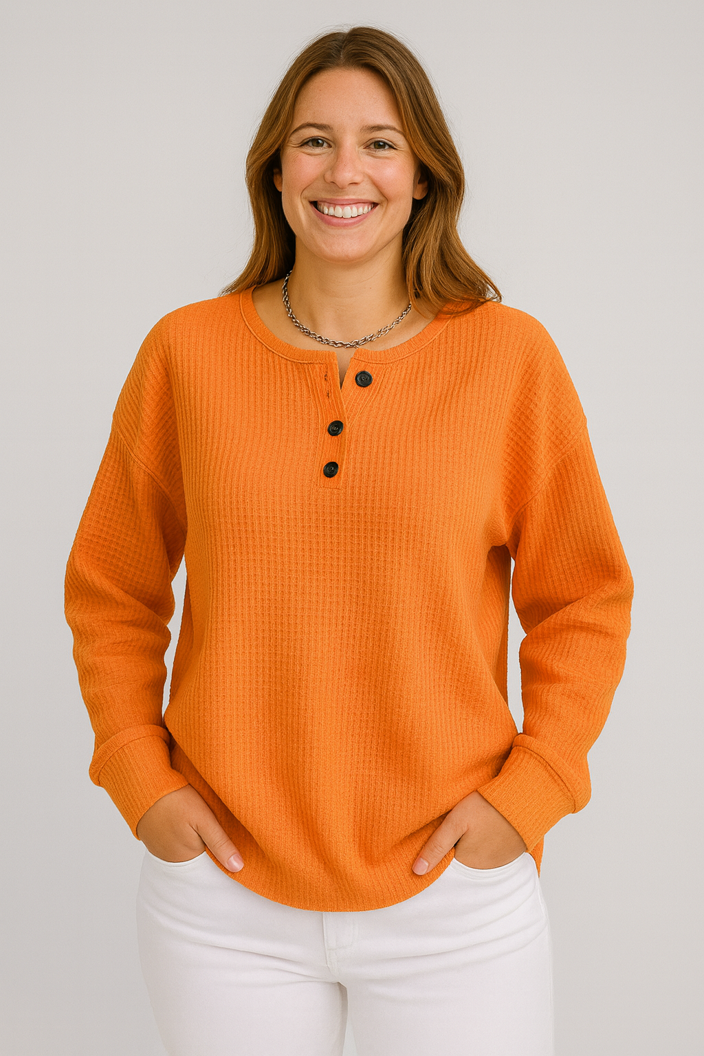 Wrap yourself in comfort and charm with the Myah Soft Waffle Knit Button Sweatshirt. Perfect for cozy mornings or laid-back outings, this sweatshirt blends effortless warmth with modern versatility, making it a must-have for your casual wardrobe.
