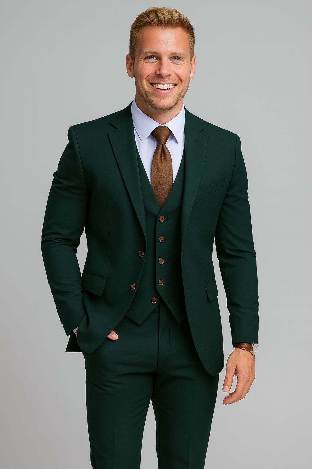 • Complete 3-piece design: Includes jacket, vest, and trousers for a polished, coordinated look.