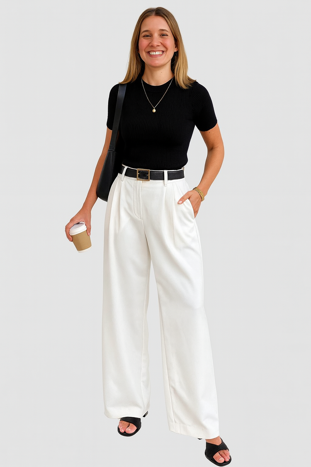 • Wide-Leg Fit: Creates a graceful drape with modern elegance.